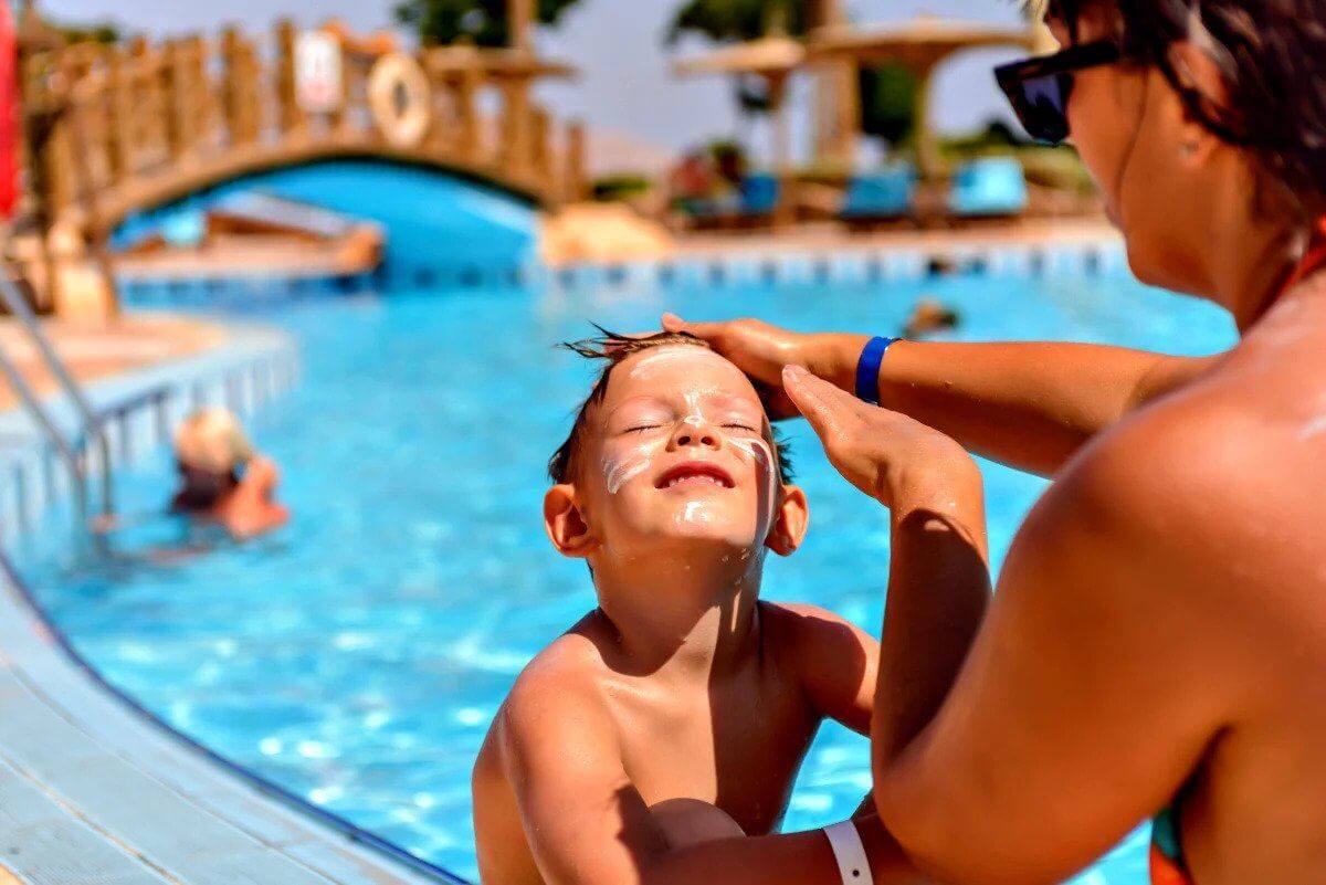 Make sure that the kids keep their hats and swim shirts on throughout the day and encourage them to wear sunglasses when not swimming underwater to protect their eyes.